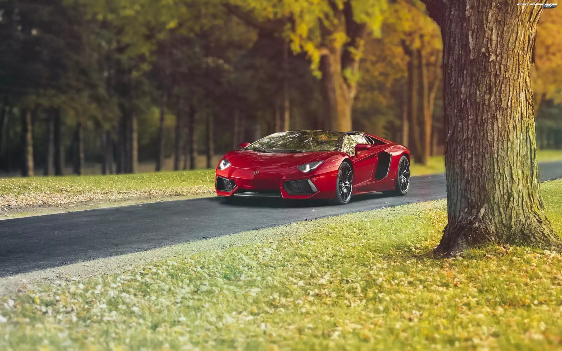 Samochód: Lamborghini, Droga, Czerwone, Aventador
